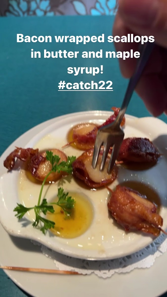 We visited Catch22 for the first time after a few of our friends recommended it and we read such great reviews online. We started with raw oysters and mussels (pictured), which were all fresh and delicious. For mains we had the Lobster dinner, scallop alfredo (pictured) and a seafood pasta. Everyone cleaned their plates and we agreed that it was some of the best seafood we've ever had. For desserts we tried the crème brulee that came with a sugar cookie (mediocre, but not the star of the dish to begin with). The crème brulee itself was delicious. I ordered a French 75 to start which was light and refreshing. I went to order a second drink but wanted a recommendation on something slightly sweeter. The bartender Justin came over, asked me a few questions and then asked if he could make me something off-menu with some ingredients he had. He brought back a delicious strawberry gin drink that was exactly what I was looking for. Our waitress Flora was excellent. It was her first or second day on the job and she served us effortlessly. She was very personable and a pleasure to chat with. Great food, great drinks. Will certainly be back!