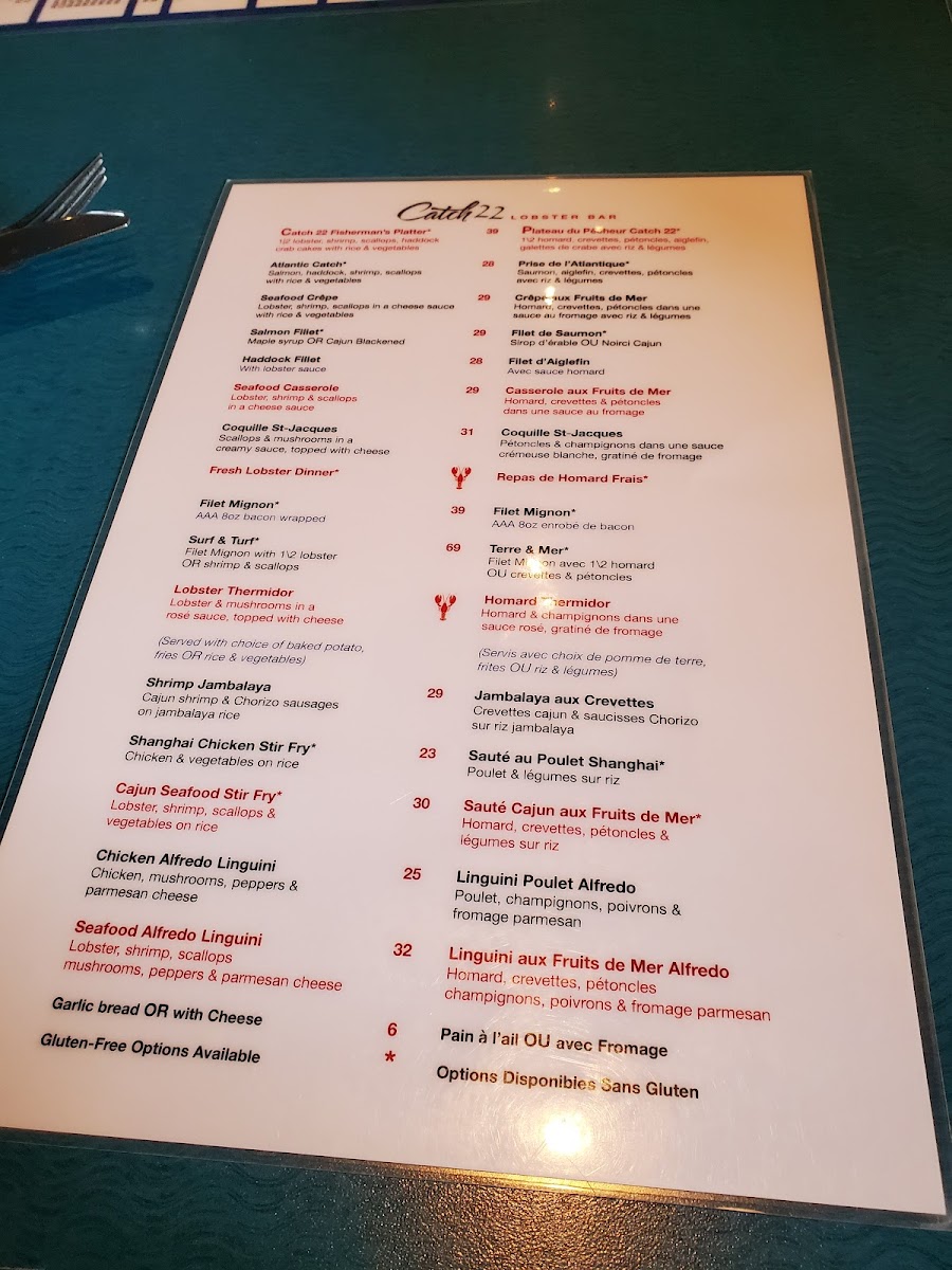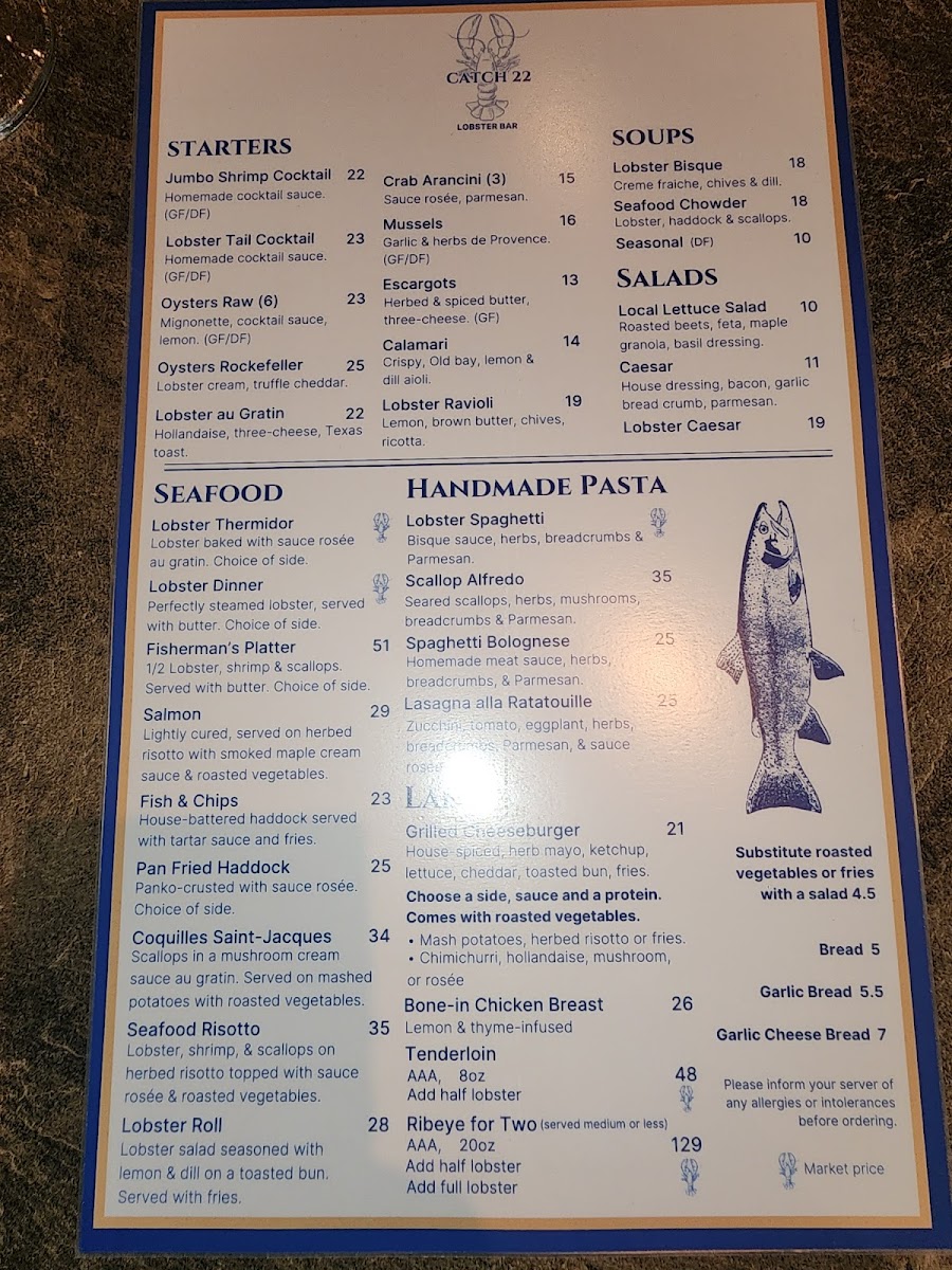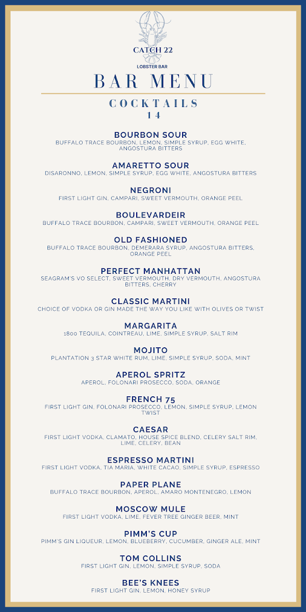 Catch22 Lobster Bar Menu